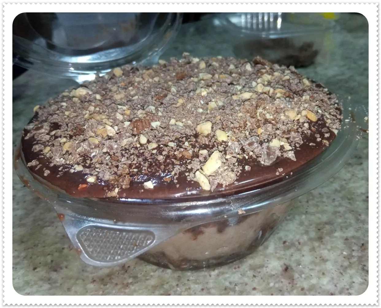 -Se adorna con galletas, maní y chocolate, triturados.
