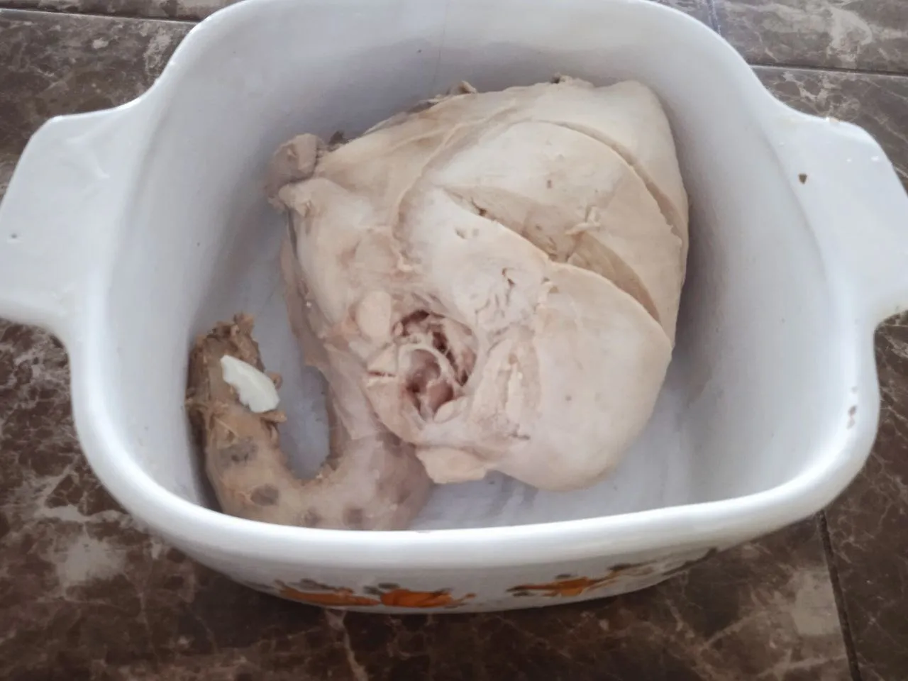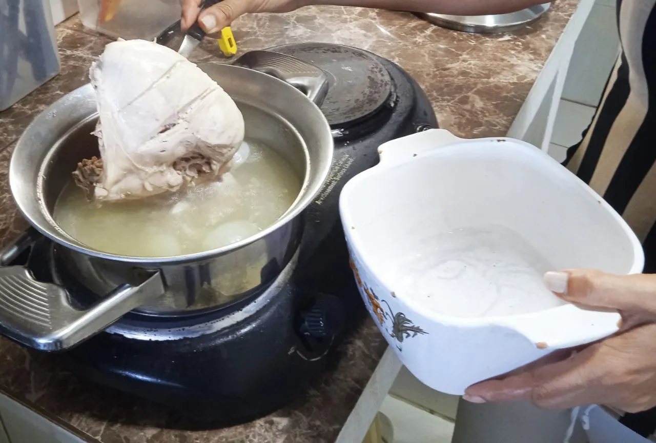 Cuando ya esté bien cocida la Pechuga, la sacamos y la dejamos reposar por unos minutos para que enfríe un poco.