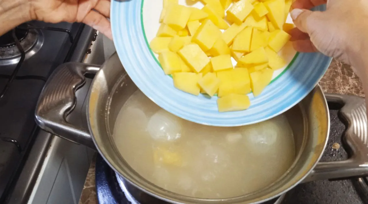 Meanwhile we cook the potatoes and carrots in the same water where we cooked the chicken breast, this will give more flavor to our vegetables, let them cook until they are tender, about 10 minutes.