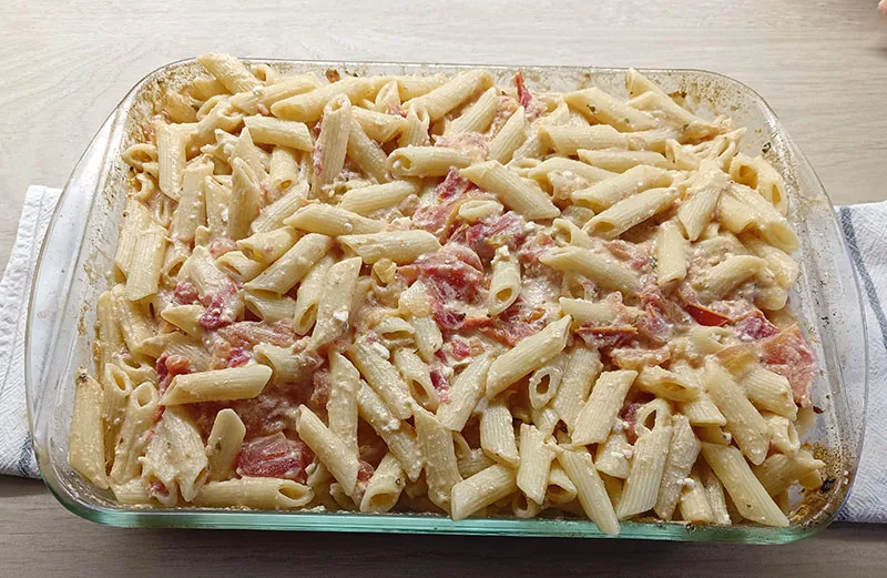 6.- 15 minutos antes de sacar los tomates del horno, montamos y preparamos los macarrones. Reservamos.
