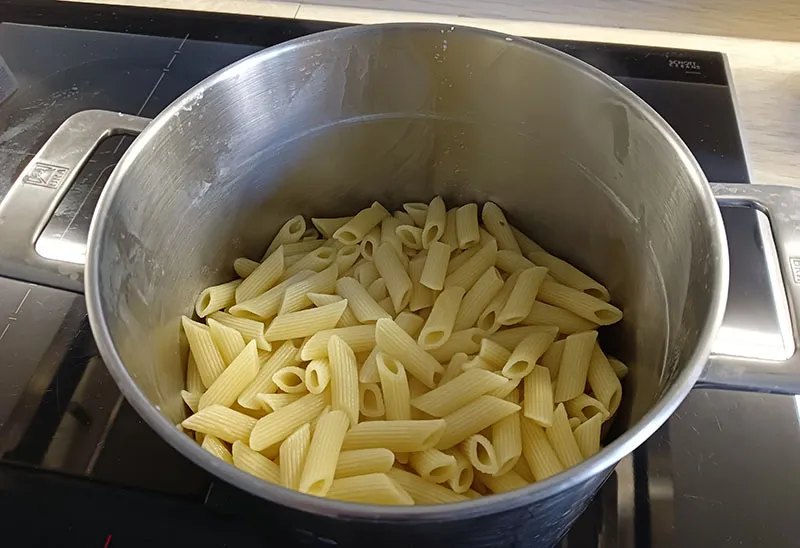 6.- 15 minutes before taking the tomatoes out of the oven, prepare the macaroni and set aside.