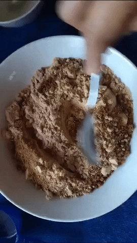 Then I mixed the crushed cookies with the cane sugar. I used the dark kind, which I think adds a more desirable moist to the crust.