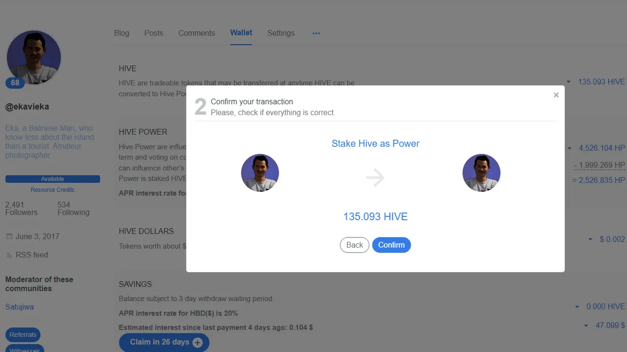For June power-up, I have 135 Hive to Power-up, all I got from the HBD that I earn from the content reward, I traded them all in the internal market. The hive price is going down a little bit, but it is also a very nice time to accumulate more of the cheaper Hive and powered it up into our account.