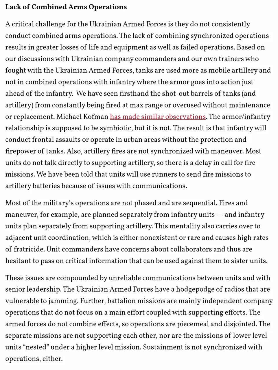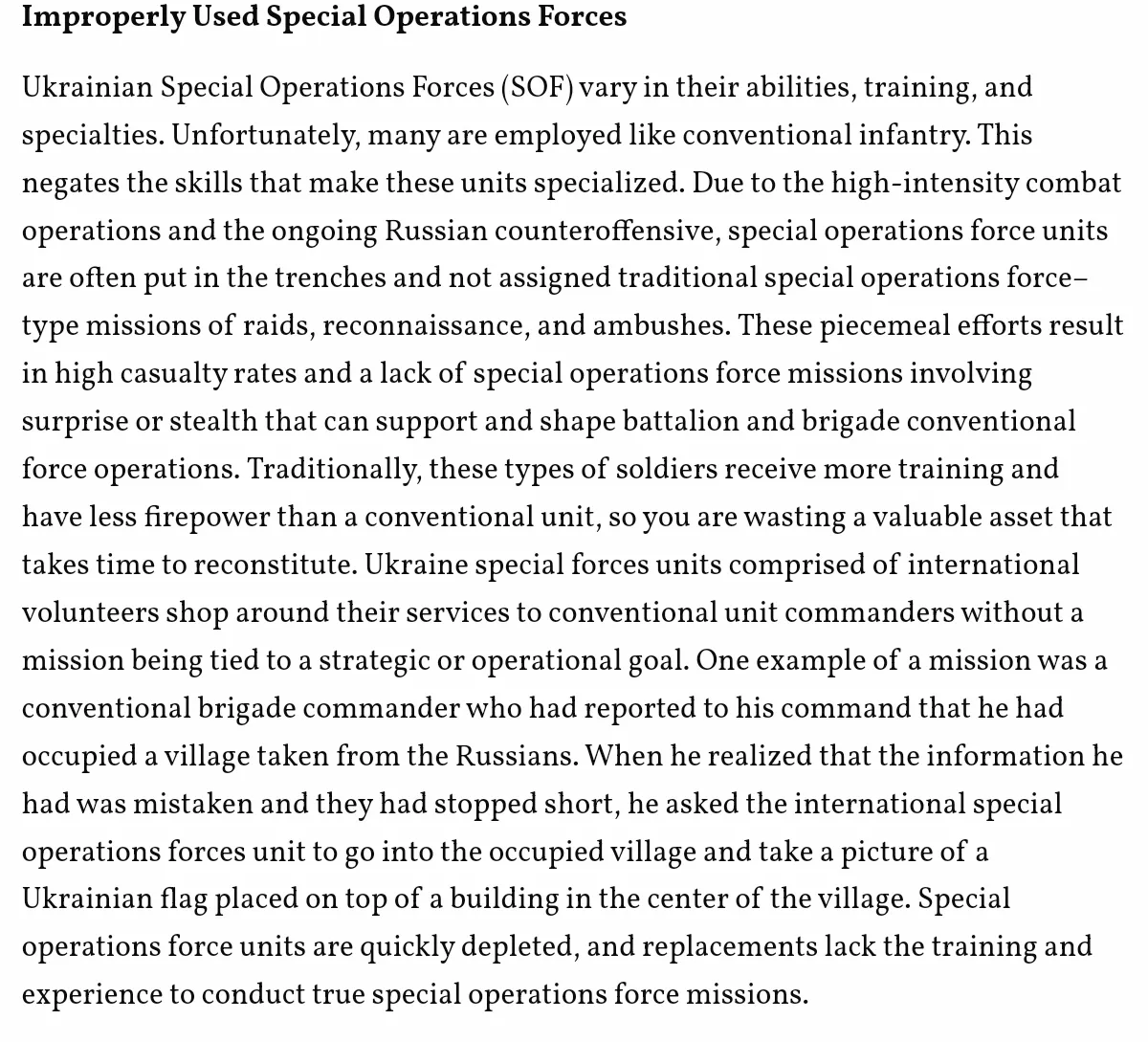 Yeah, that will fix the corruption, that will give them working communications, that will change the Russian Jamming and EW, that will somehow manifest an air force for Kivv or the artillery that has long since been depleted and I'm sure Kivv is sending Special Forces to 'defend' from trenches because of their doctrine, not because that's what they're reduced to using, showing how brain dead retarded these people are who suggested that the Russian army is poorly trained in their conclusion and previously trying to claim the Russian have a manpower advantage, and brain dead indeed as Russians have conducted numerous successful urban operations and did so without the 6 to 1 advantage these clowns think Ukranazi need. Read their long and just as unrealistic as it is 'complete' plan, despite being a complete overhaul of the Ukrainian "military":