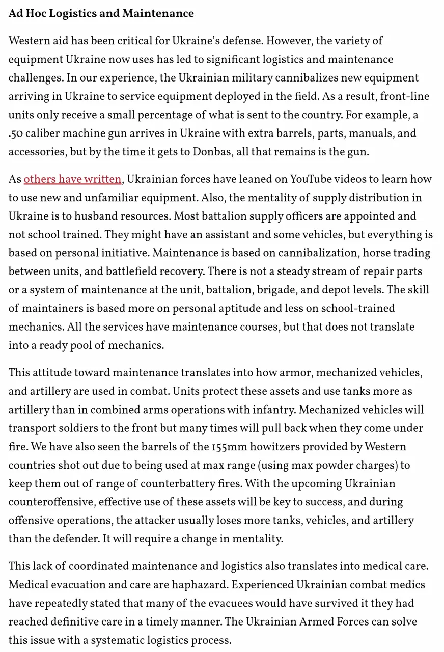 This sounds like a cry for more billions in military aid, which is certainly now muted in many ways by the new reports coming from Mexico showing cartels with US made rocket launchers meant for Ukraine and it's hard to say that this will encourage anymore such aid from others but the US is certainly going to pour in even more weapons despite the ever dwindling stockpiles, yet it will hardly make any difference or change the reality based on what this War On The Rocks article I found via MoA details: