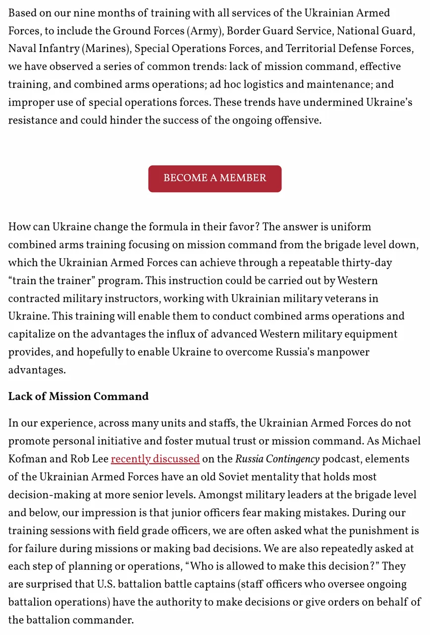 And unlike these western 'trainers', the Ukrainians are waking up to exactly how far up shit creek without a paddle they are: