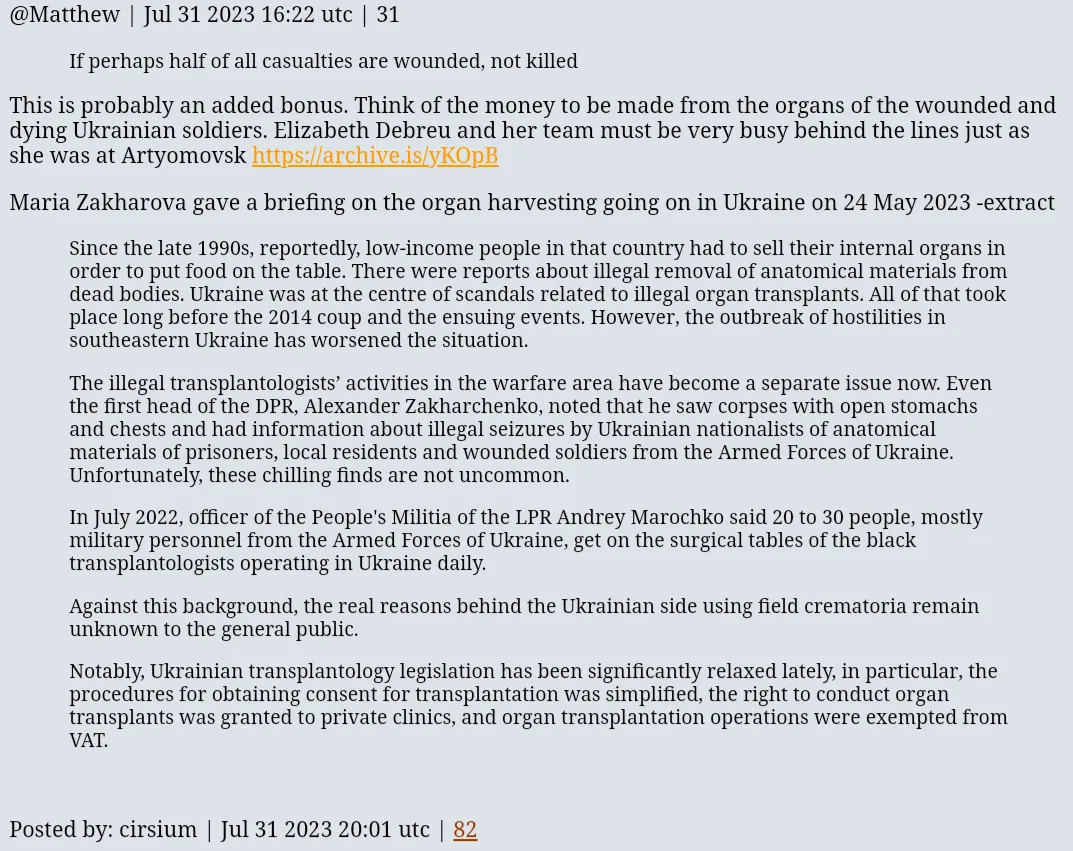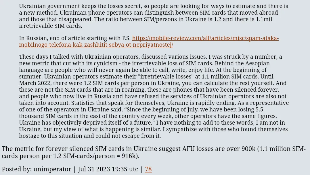 Before that, the Strategic Culture's article was linked a couple times in the comments, and even though it doesn't relate directly to the high casualties sustained by Kivv, it ties into the overall failure as it parallels how the defeat in Ukraine is as catastrophic for NATO as the Hunter Laptop is for Biden, and the plan to pretend that it's not significant whatsoever is a longshot much like its been for the Hunter's scandals:
