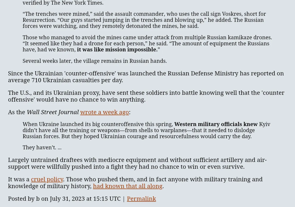 https://www.moonofalabama.org/2023/07/ukrainian-soldiers-tell-of-high-losses-and-few-wins/