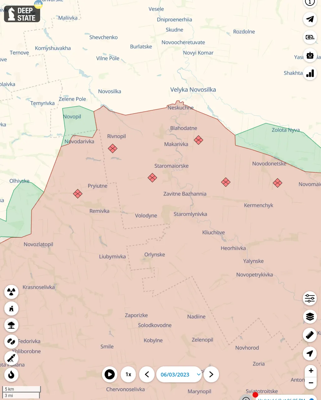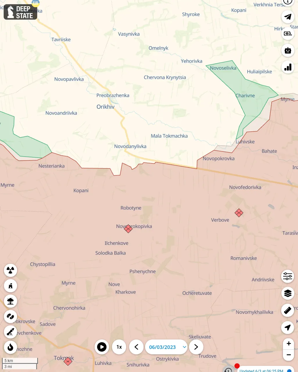 2023-06-03:45452.38km2/17513.78So from the start of the Offensyiv Russian control has fallen from 45'452.38 km2 to 44'833.37km2.