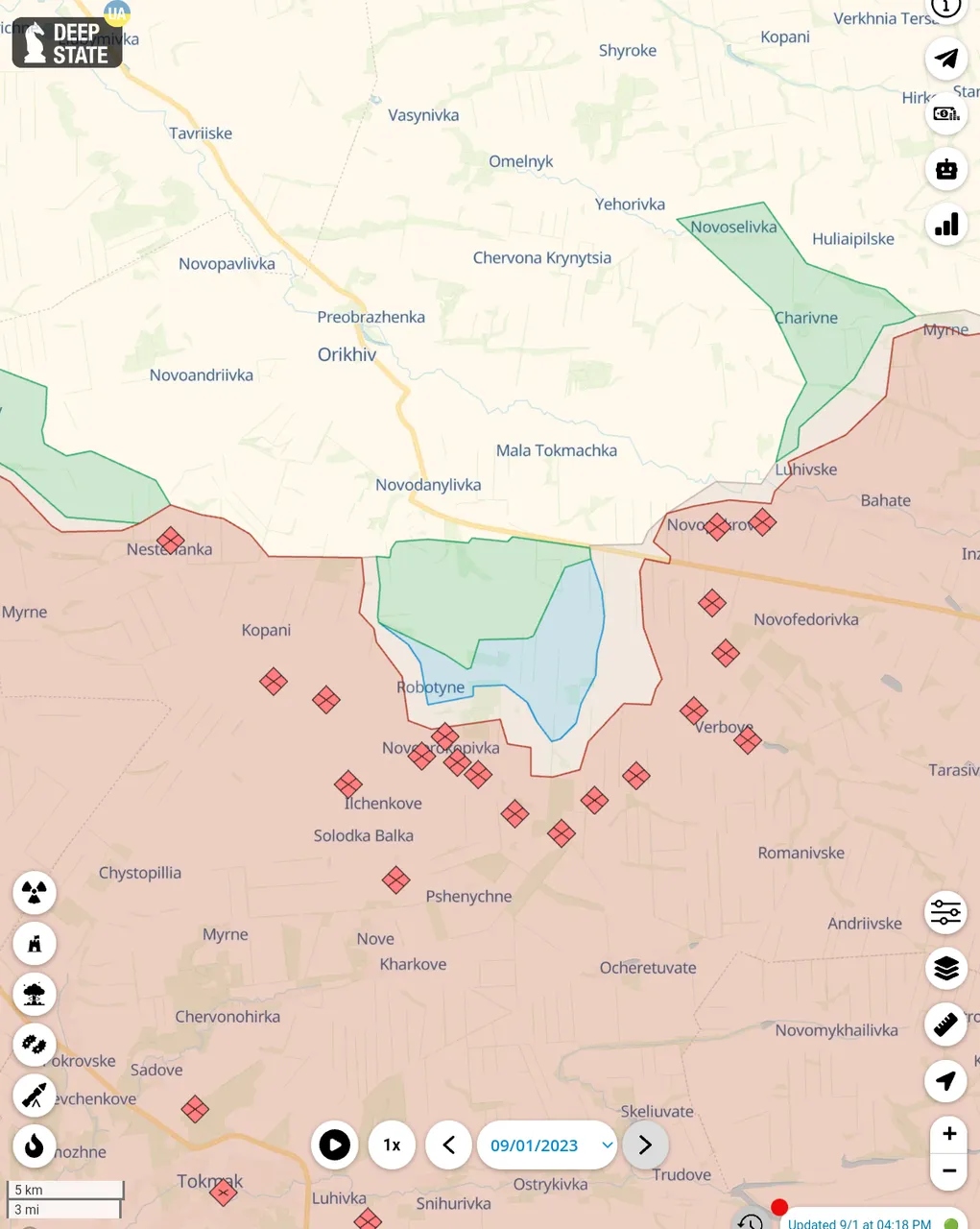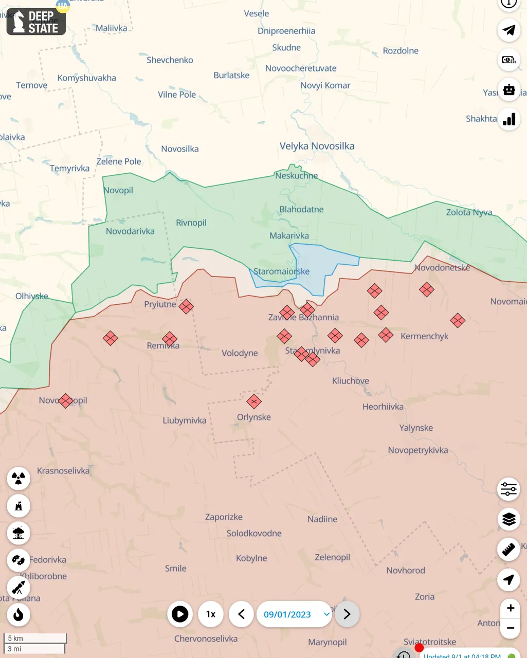 I pulled some data from hoholmaps (deepstate), this is the counteroffensive progress according to their maps: