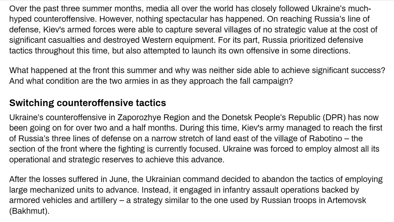 The counterattack has been a difficult operation for Ukraine in every way. Especially at the beginning of the attack, Russia used its artillery effectively, the mines were in order and Ukraine's ability was not enough to advance. The attack dragged on for a long time in a small area and consumed the Ukrainian forces.