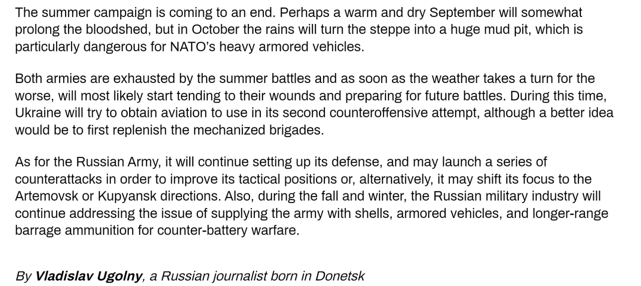The so loudly announced “counteroffensive” dragged on for a long time, and now Zelensky and Zaluzhny have been given the last chance to show where NATO weapons and armored vehicles are going. This must be done before the onset of autumn and the rainy season.