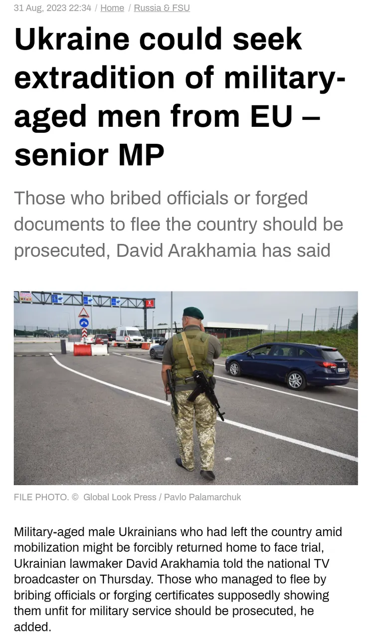 Leader of Ukraine's ruling party has not ruled out extradition for Ukrainians who left the country illegally