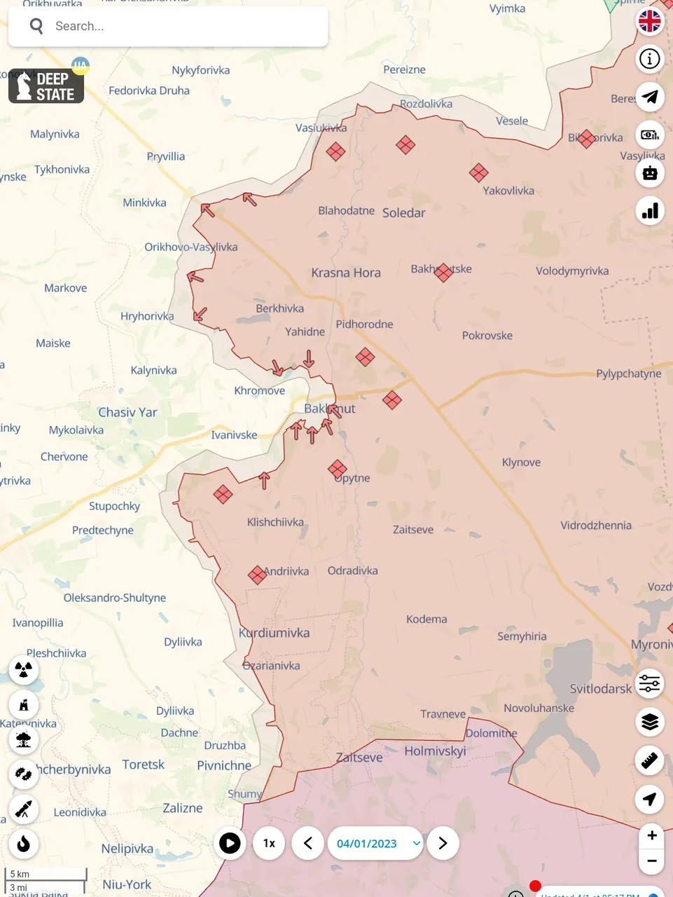 During the five-month period between December 2, 2022 and May 2, 2023, Russian forces captured about 870 square kilometers (336 square miles)
