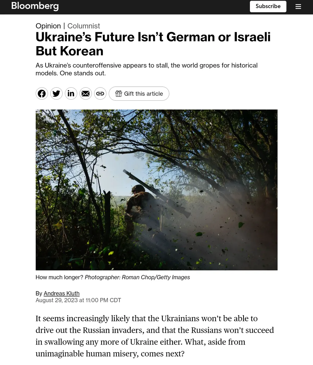 https://www.bloomberg.com/opinion/articles/2023-08-30/ukraine-s-future-isn-t-german-or-israeli-but-korean