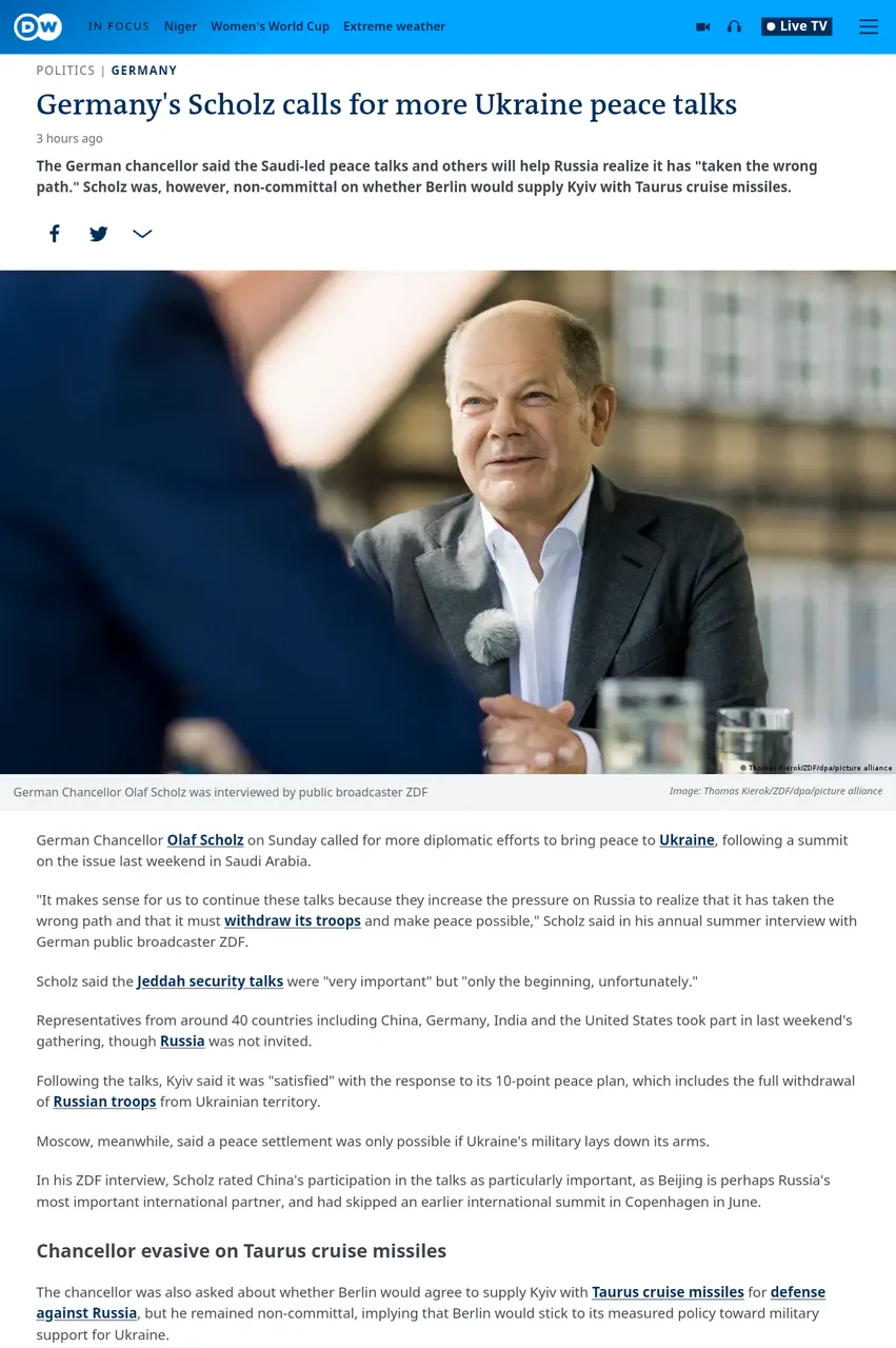 In another tacit admission that the counteroffensive is a failure, Germany's Selected PM wants peace talks: