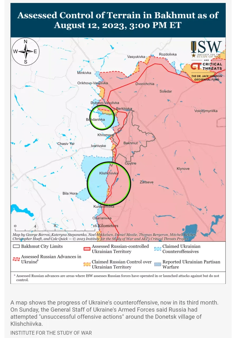 The blue area represents almost three months of "advances" and conveniently leaves out the recent territory taken back by RF in the south of Klishchivka: