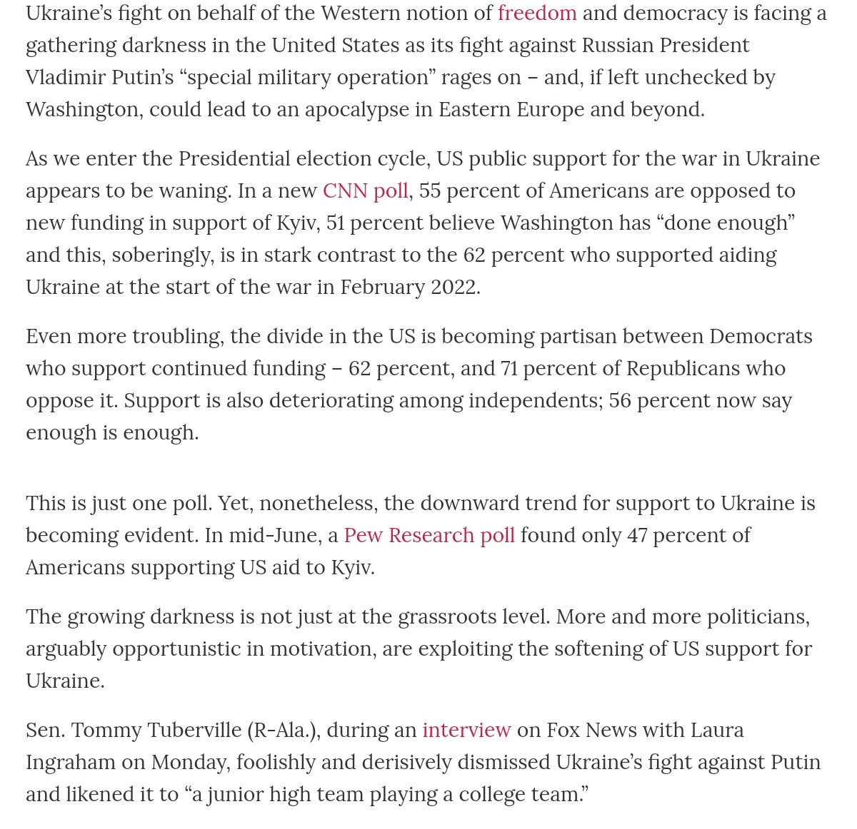 Not content with sitting down and doing nothing as the tsunami of mainstream media articles characterizing the efforts of the offensive as a failure keep mounting, Kivv Independent joins into the Doominghard as it seethes at the polls which show that the US is changing their minds on Aiding Ukraine while these "journalists" try to sell the myth that Bakhmut is Encircled and they are dooming so hard they compare the future of Ukraine should Biden stop fueling the fire, to the US failure in Vietnam, and I'm not kidding about the Bakhmut part either as you'll see: