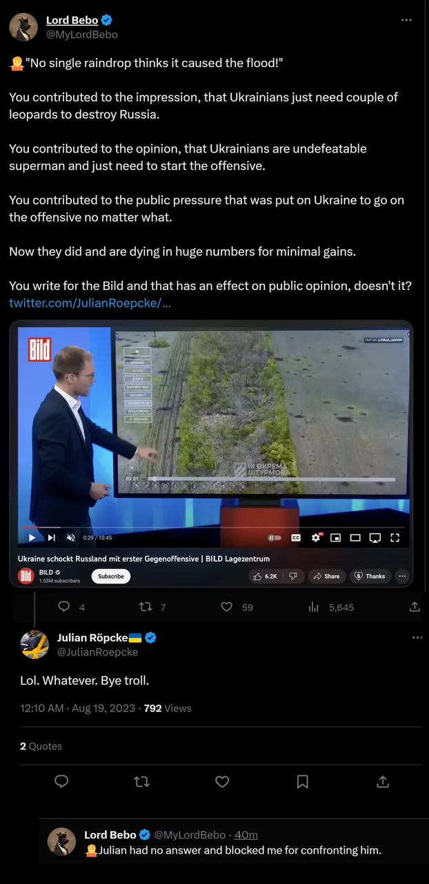 All that Doominghard by the MSM corrupted that poor Ukraine Supporter, I hope they're happy being such Putin Bots
