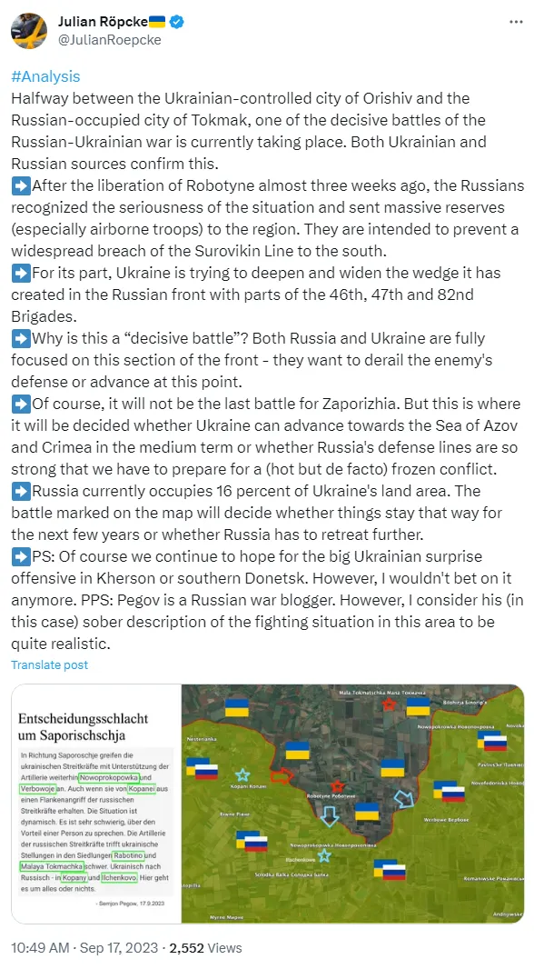 It's Ovyr: Russians In Rabotino, Klishchivka and Avdeevka, New Uragan(Hurricane) 90KM Range Precision Rockets, RU Produces 7x More Than West, Muh NATO Article Five, Boris Seethes, Dooming On and More