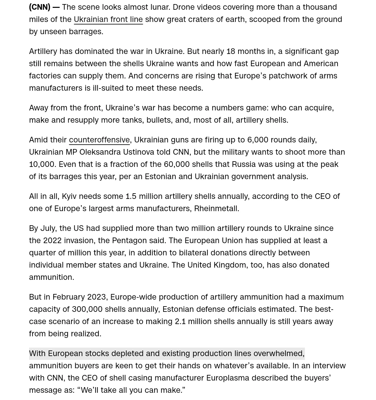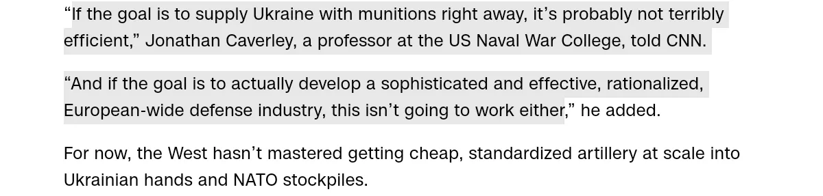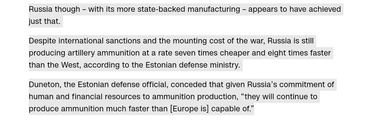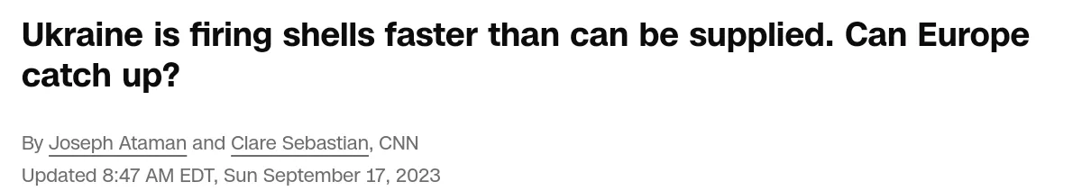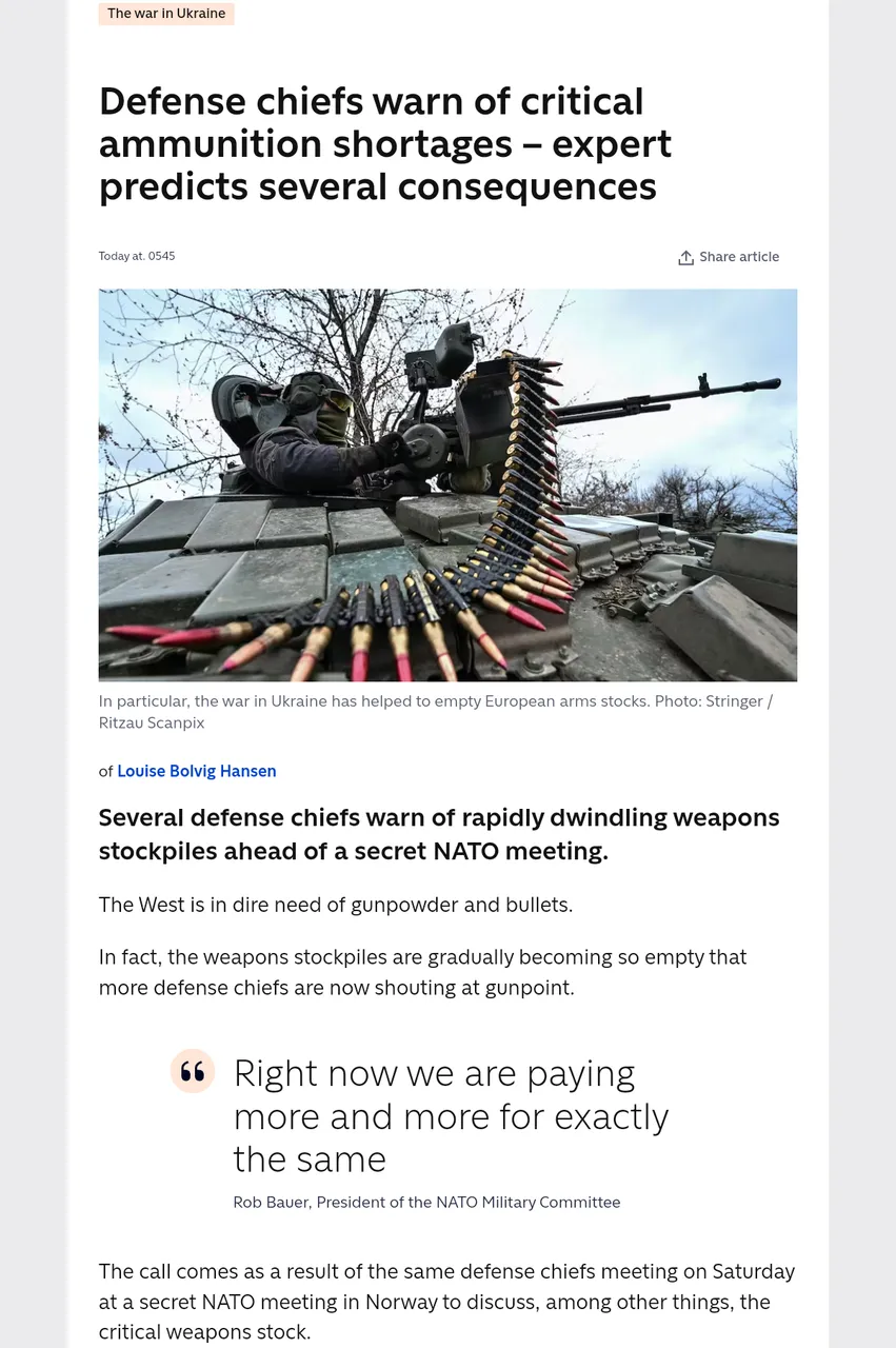 After much Russian Misinformation making NATO and Ukraine repeatedly claim the Russians are running out of ammunition, tanks, drones, shovels, even socks, we find out it's NATO who's on the verge of running out as they admit they can't even produce one seventh what they think Russia produces. The most hilarious part, they have depleted their stockpiles and are floating "communal" stockpiles even though they can't keep up with Ukraine's demand, a demand that is a Tenth the size of Russia's and which shows no end in sight, and they want to win a war of attrition but they can't even standardize shells.