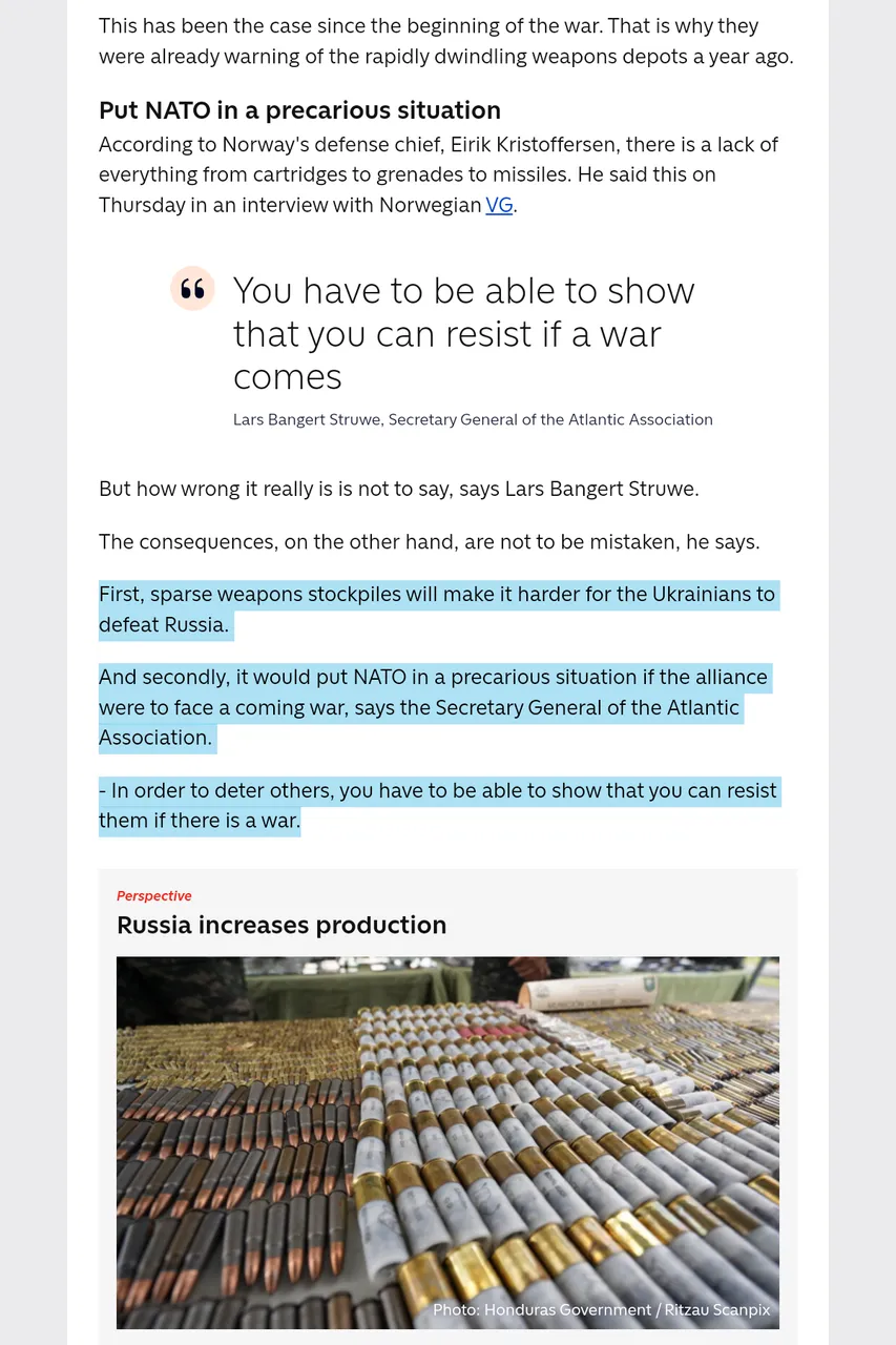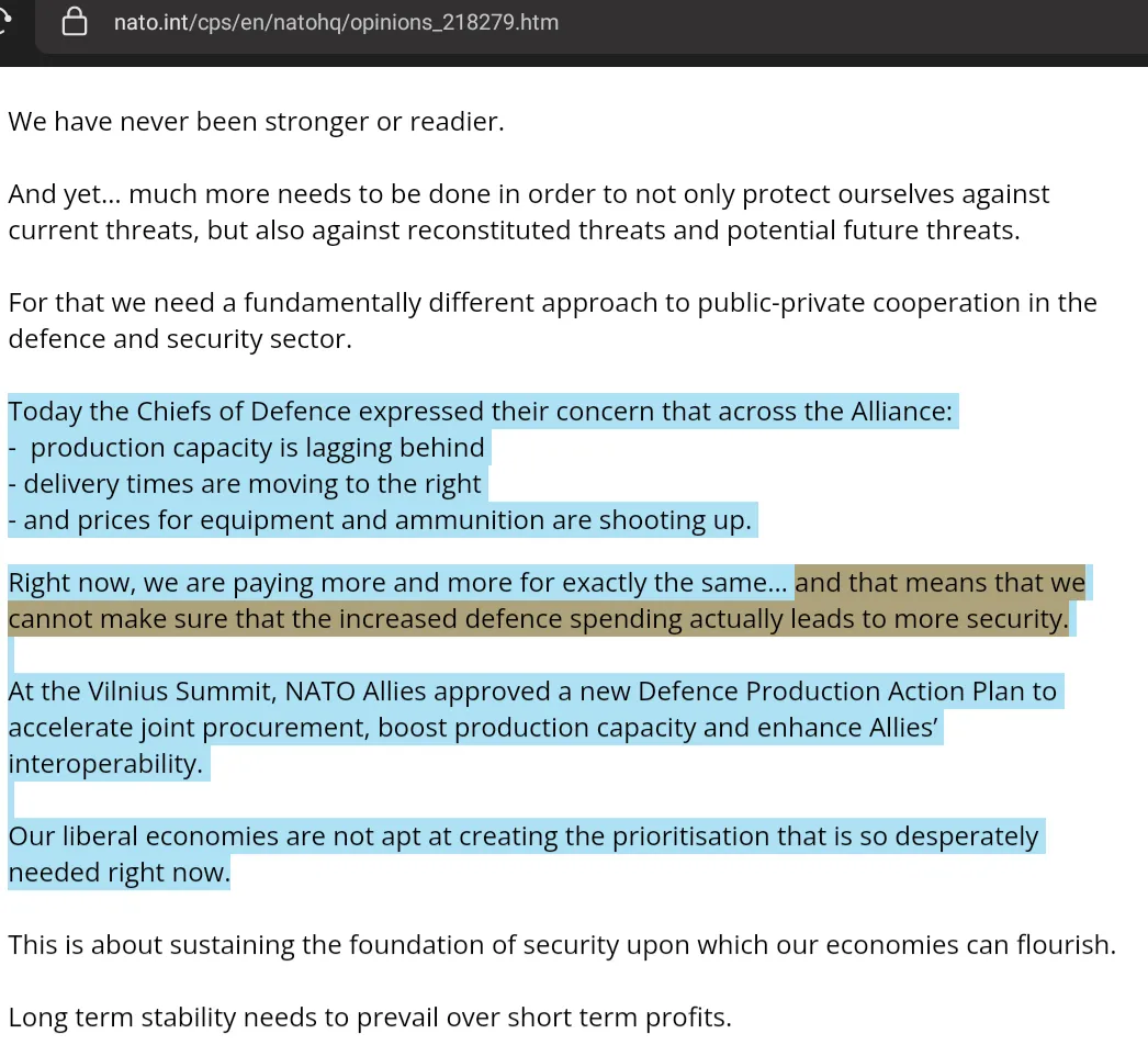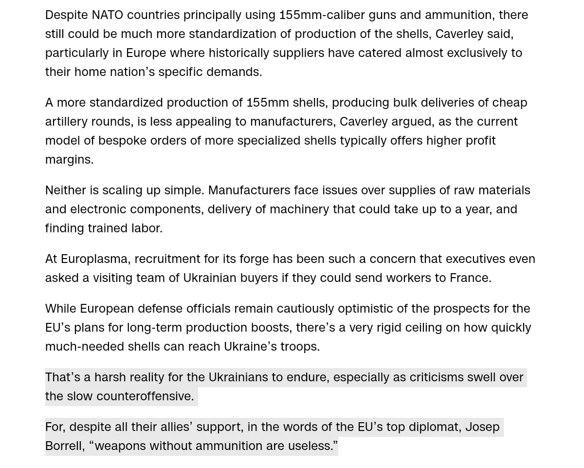 After much Russian Misinformation making NATO and Ukraine repeatedly claim the Russians are running out of ammunition, tanks, drones, shovels, even socks, we find out it's NATO who's on the verge of running out as they admit they can't even produce one seventh what they think Russia produces. The most hilarious part, they have depleted their stockpiles and are floating "communal" stockpiles even though they can't keep up with Ukraine's demand, a demand that is a Tenth the size of Russia's and which shows no end in sight, and they want to win a war of attrition but they can't even standardize shells.