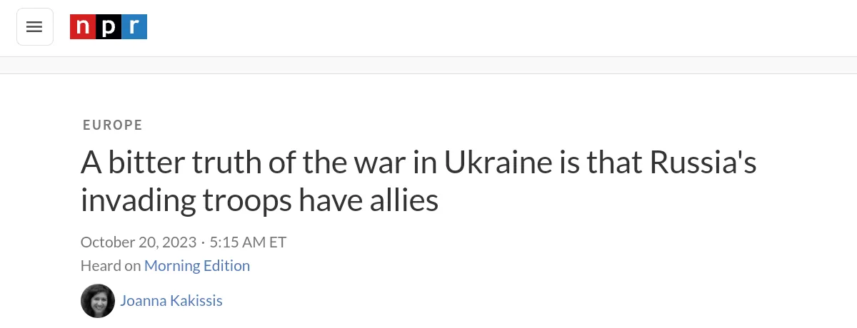 https://www.npr.org/2023/10/20/1207367362/a-bitter-truth-of-the-war-in-ukraine-is-that-russia-s-invading-troops-have-allie