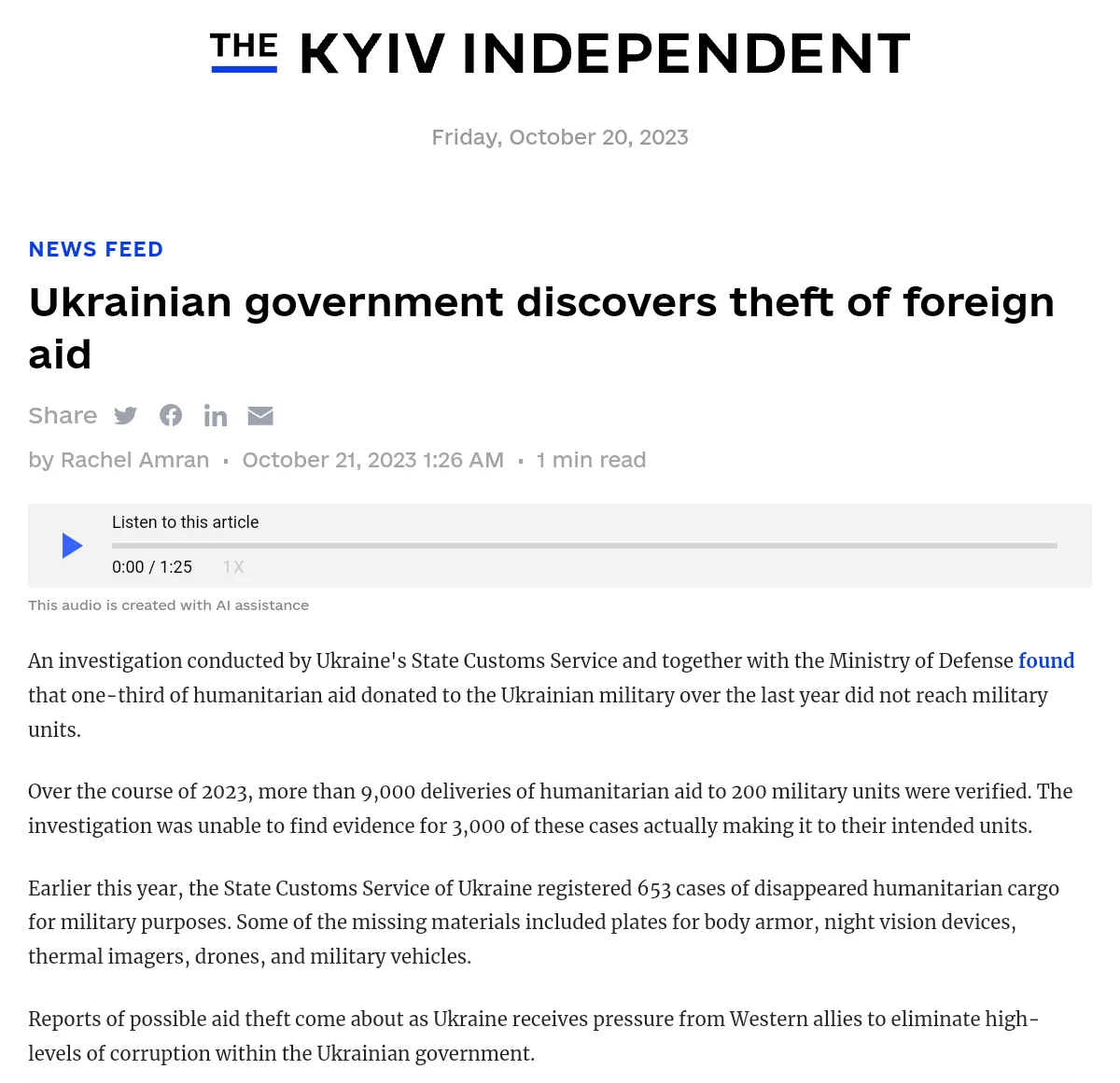 https://kyivindependent.com/ukrainian-government-discovers-theft-of-foreign-aid/