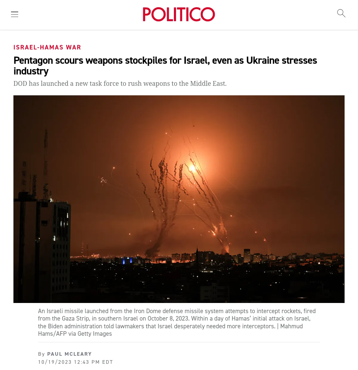https://www.politico.com/news/2023/10/19/pentagon-weapons-stockpiles-israel-ukraine-00122495