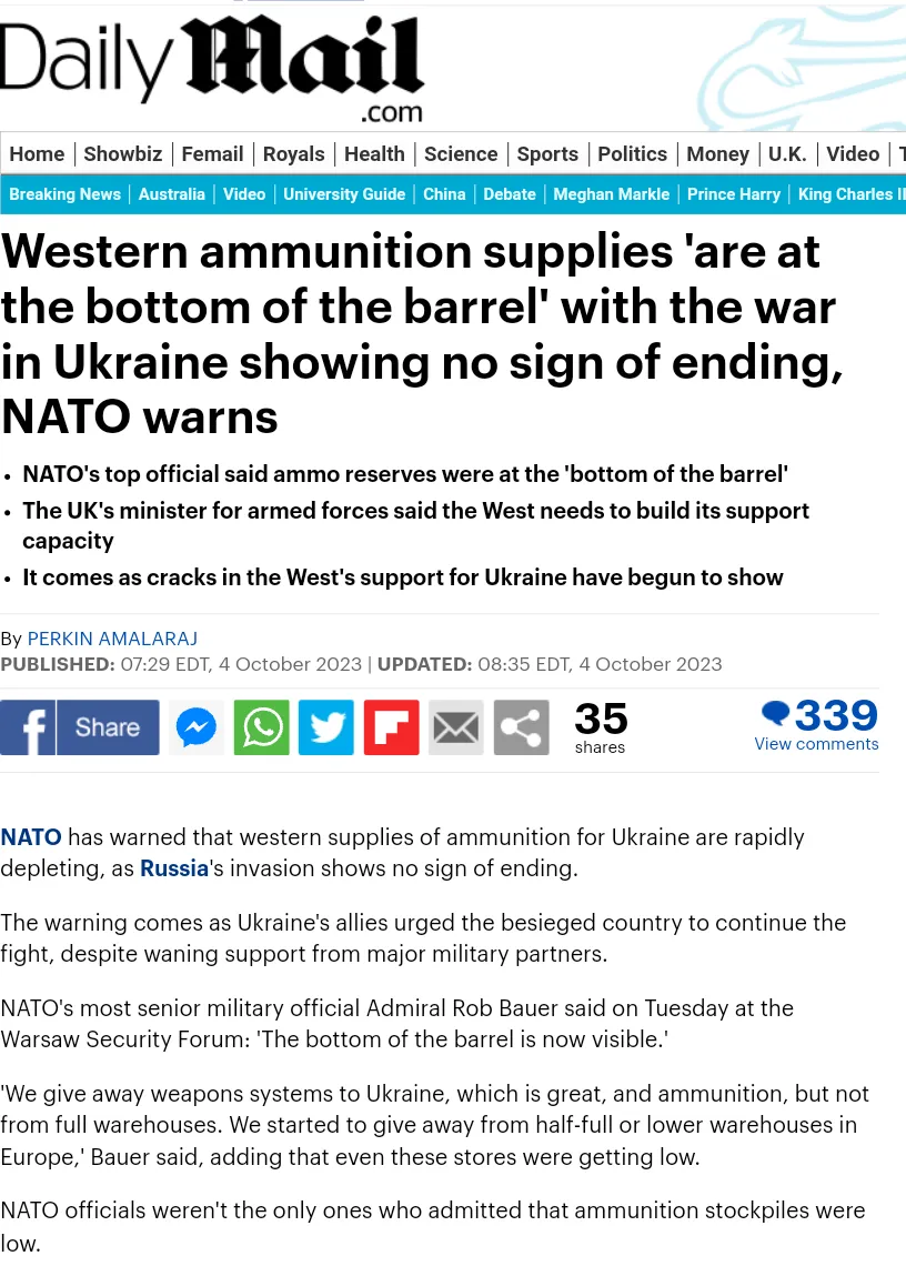 https://www.dailymail.co.uk/news/article-12592743/Western-ammunition-supplies-bottom-barrel-war-Ukraine-showing-no-sign-ending-NATO-warns.html