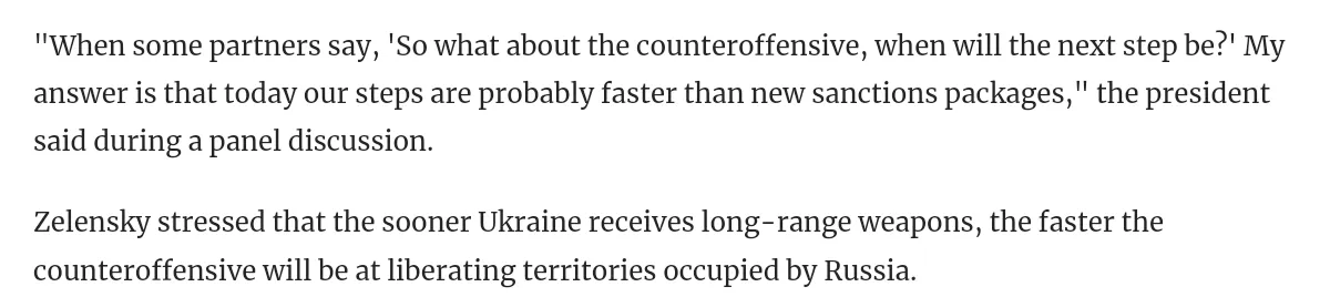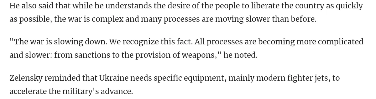 He said a few weeks ago that the offensive was going to pick up pace and accelerate, now the cope is that it's "faster" than new sanctions, the most extensive sanctions in history, need to be more extensive, lol: