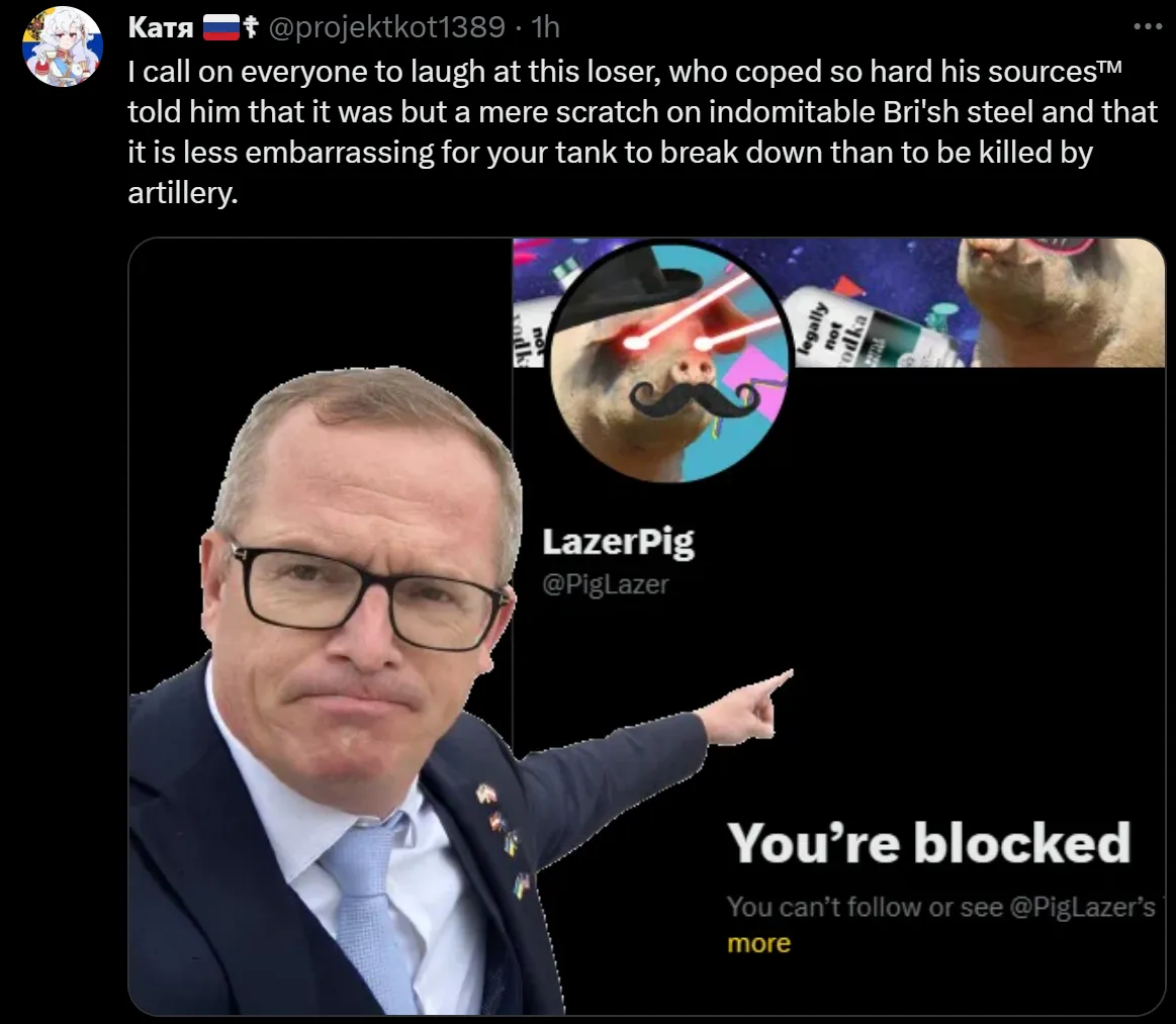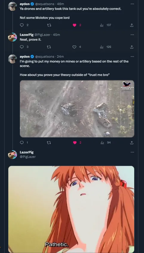 These sources now claim the crew survived a mine, which detonated the REAR of the tank. Then the Turret Detachment was because of the lancet strike (lancet 3, very specific). That explains why the tank was filmed blowing the fuck out by a Kornet ATGM. No doubt that the cope will prevail and this propaganda rag won't correct their nonsensical and clearly false claims.