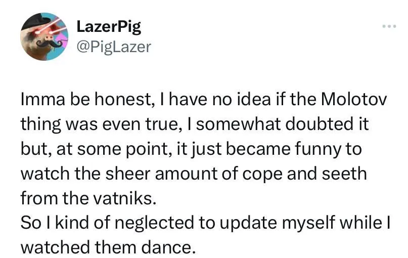 It was just a prank that served to humiliate myself in front of the world, yet again, as I made vatniks cope and seethe at my genius level reasoning and insight