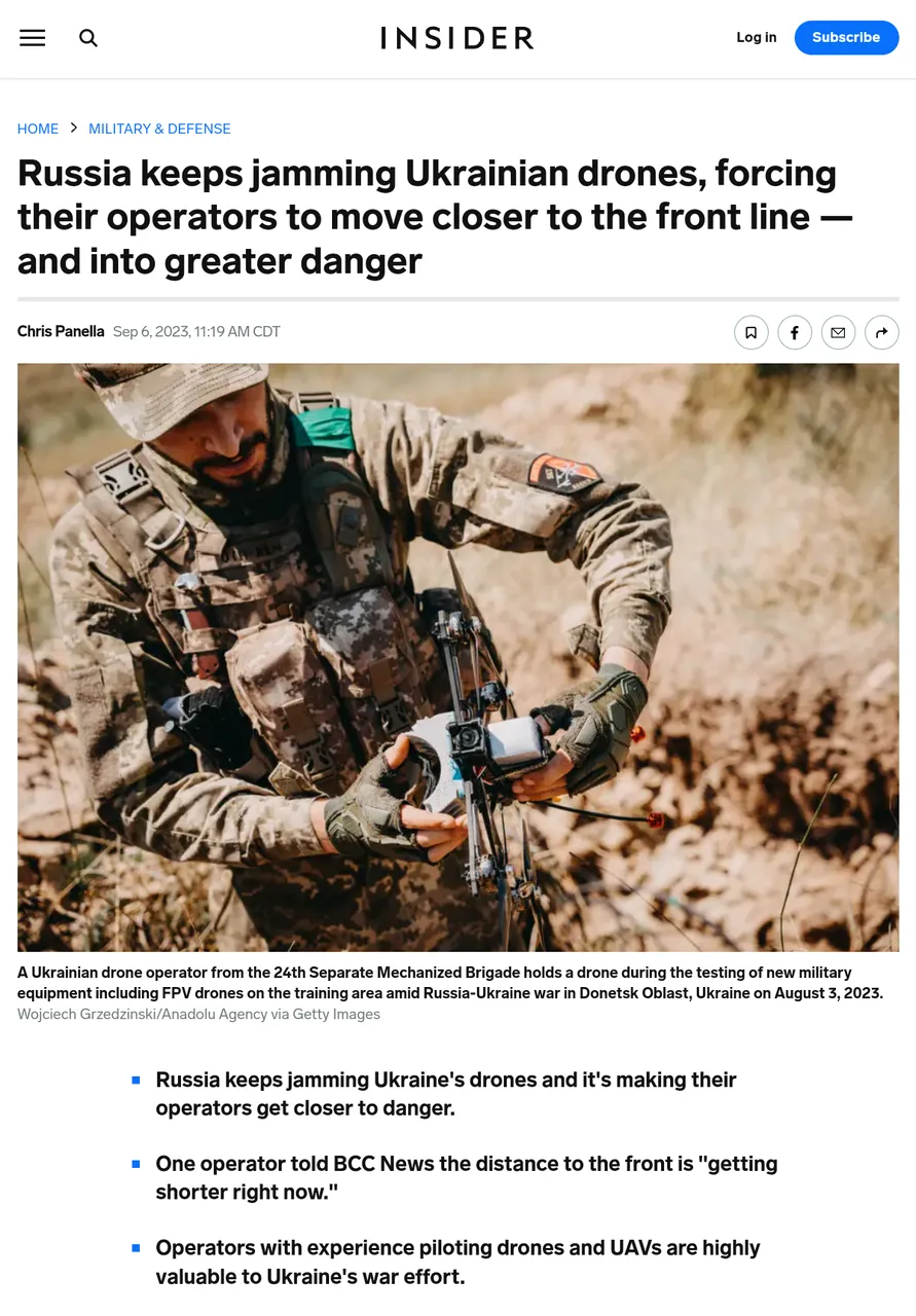 https://www.businessinsider.com/russia-jamming-ukraine-drones-forcing-operators-danger-front-line-2023-9