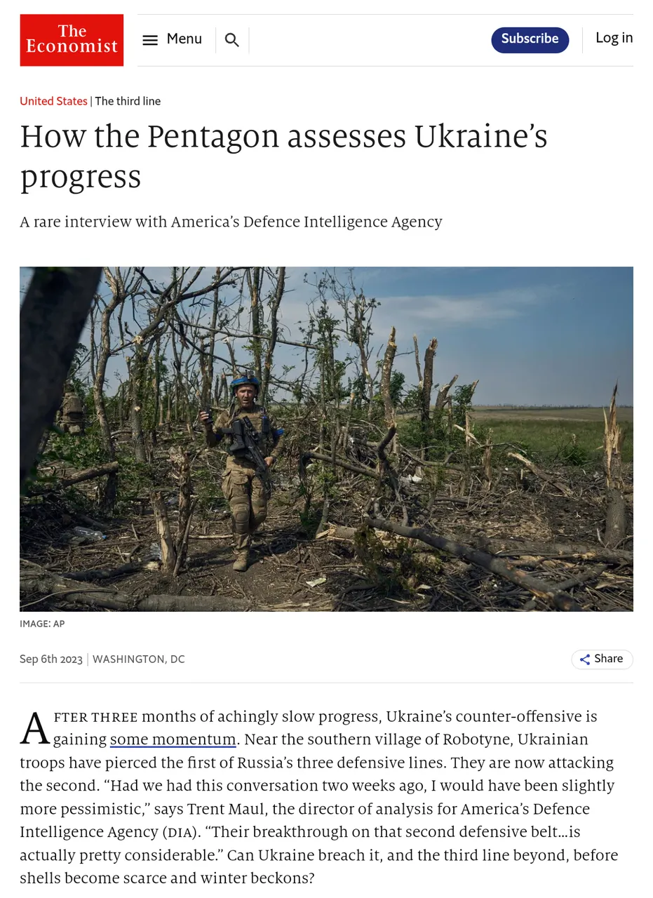 Even without a breakthrough this year, the DIA is moderately confident that if Ukraine can widen the salient around Robotyne, hold its positions and keep ammo flowing in, it will be well placed for a fresh push in 2024.