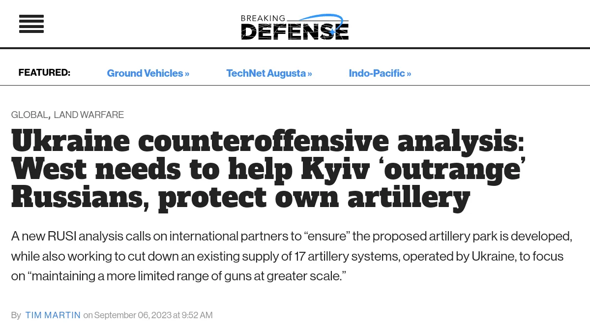 https://breakingdefense.com/2023/09/ukraine-counteroffensive-analysis-west-needs-to-help-kyiv-outrange-russians-protect-own-artillery/