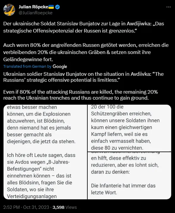 It's Ovyr: Leopards Burn; Deep Fakes Backfire; Military Industrial Spending Good For Economy; New Speaker Graded F On Ukrainian; Arestovich: Avdeevka Will Fall; Doominghard, RU Advances and Much More