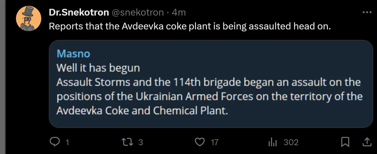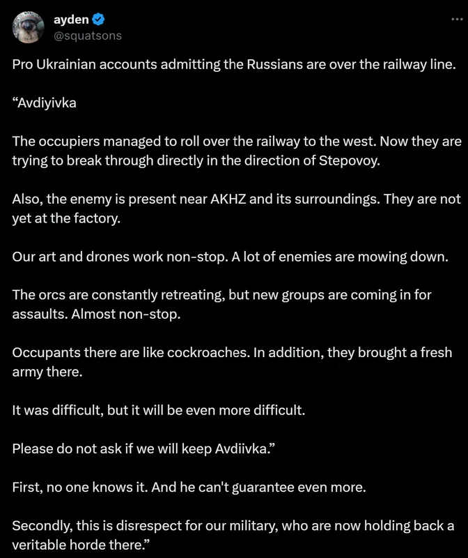 It's Ovyr: Russians Advanced In And Around Avdeevka, AFU Howitzers Shot Less Than One Shell A Day, Queef Blames West Again For Lack Of Progress On Front, Kirby Resurects Human Wave Attacks As Queef Admits Using Only Attacks On Foot and Much More Dooming