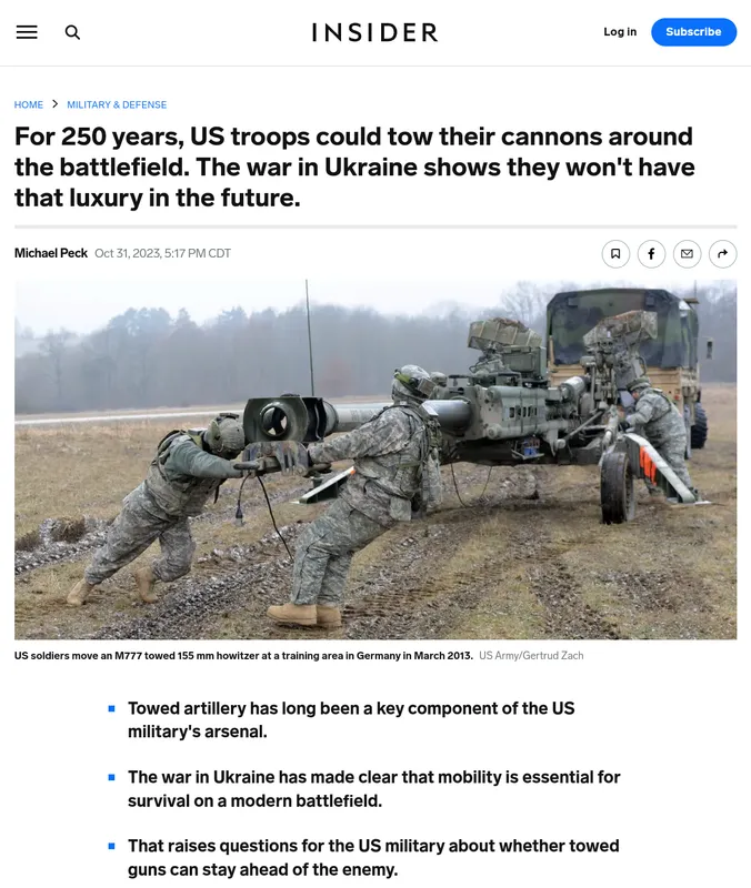 https://www.businessinsider.com/ukraine-war-shows-towed-artillery-more-vulnerable-in-future-2023-10