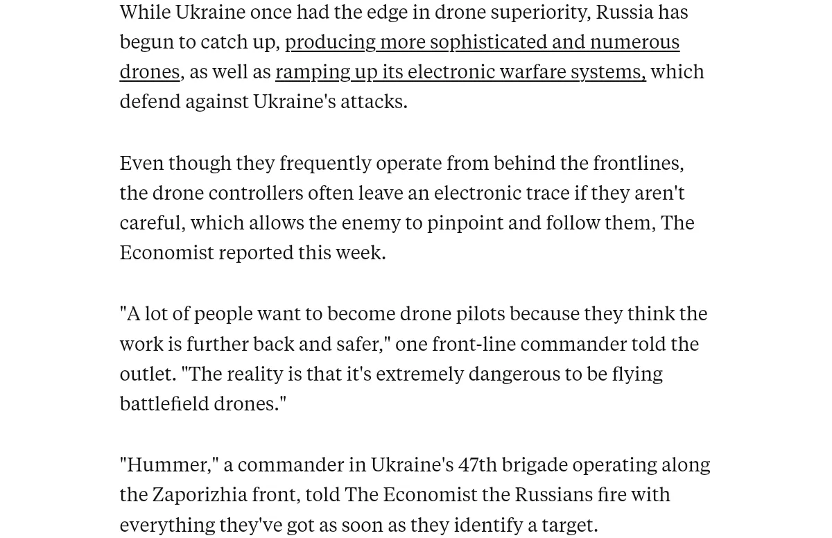 https://www.businessinsider.com/russians-hunting-ukrainian-drone-pilots-destroying-tanks-electronic-warfare-2023-10