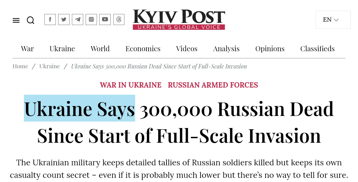 Why did a Ukrainian major general say multiple times that they have hundreds of thousands of dead?