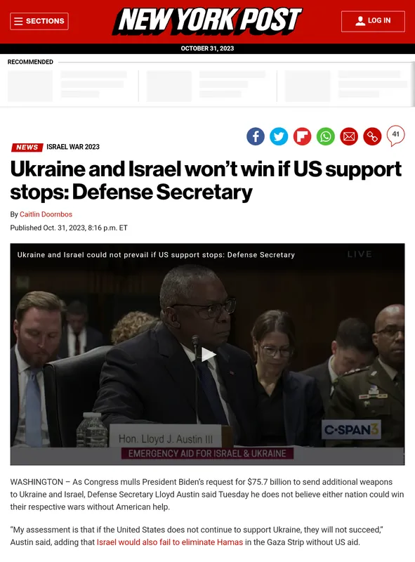 https://nypost.com/2023/10/31/news/ukraine-and-israel-wont-win-if-us-support-stops-defense-secretary/