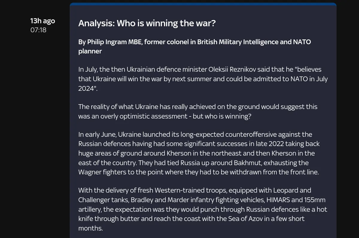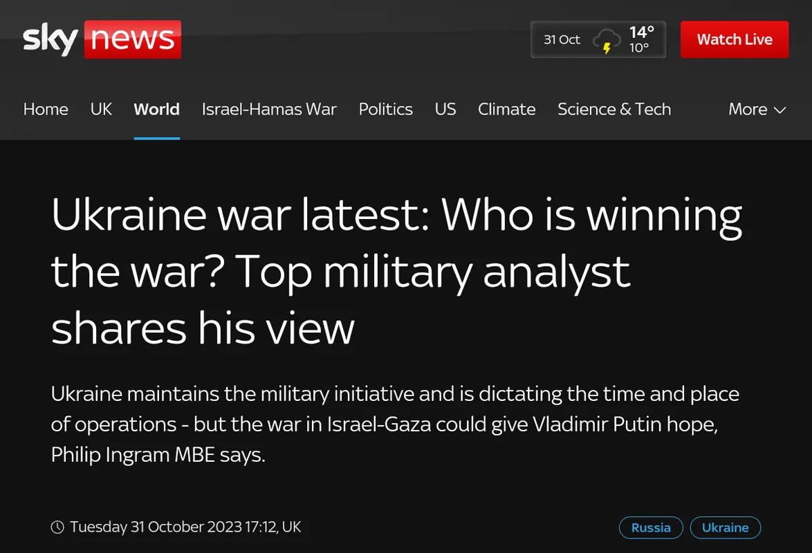 It's Ovyr: Hoisted By Their Own Petard - National Interest Piece On Western Hubris, Sky News Dooms Hard, Russia Attacks Starlink Satellites, Business Insider - Putin May Be Winning, and Much More Dooming