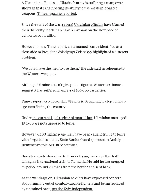https://www.businessinsider.com/ukraine-cant-use-western-weapons-due-to-soldier-shortage-report-2023-10
