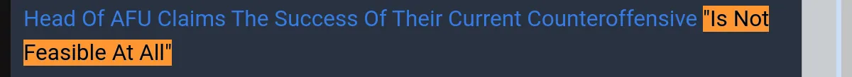 Head Of AFU Claims The Success Of Their Current Counteroffensive "Is Not Feasible At All"
