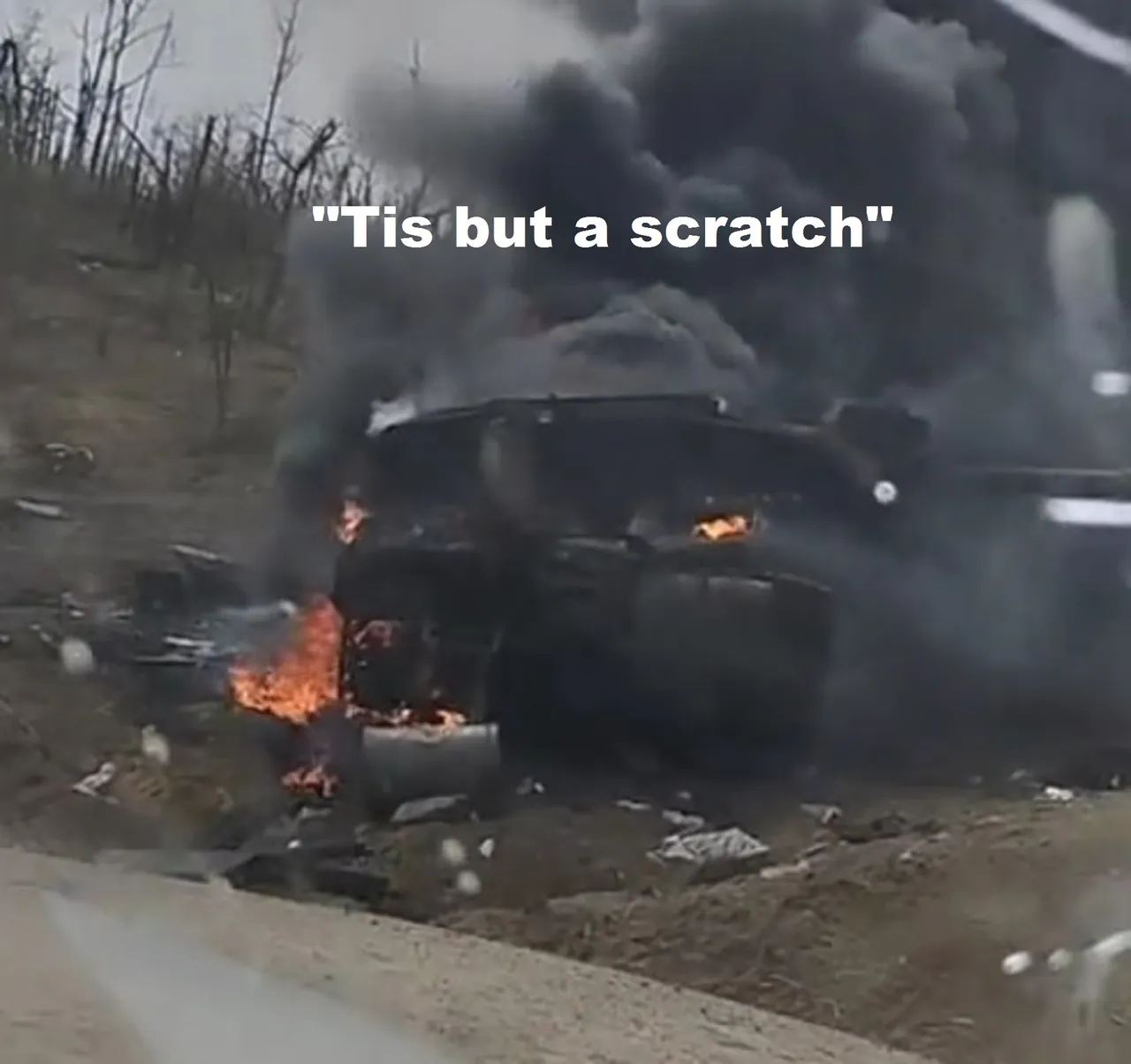 Everyone survived, yet exactly like the Friendly Fire incident, the turret came off, but don't worry, they got out before that happened and the turret is still attached: