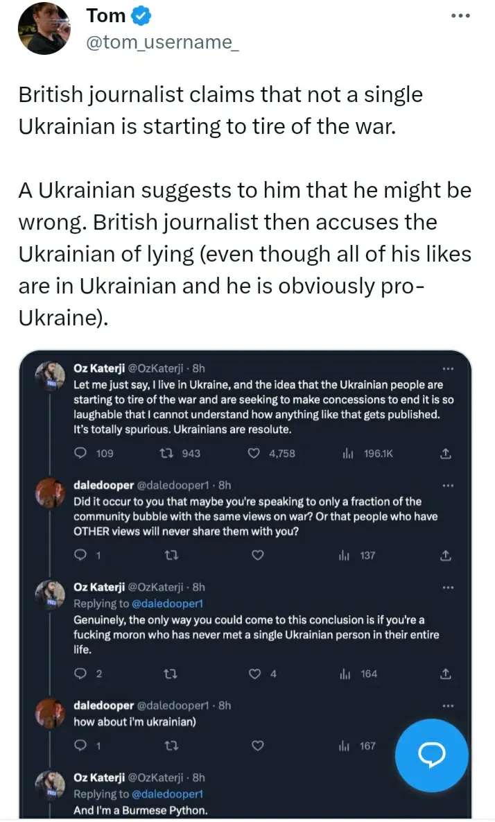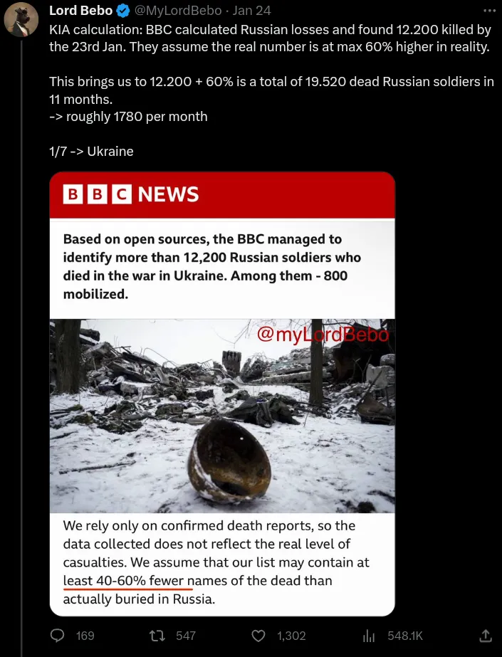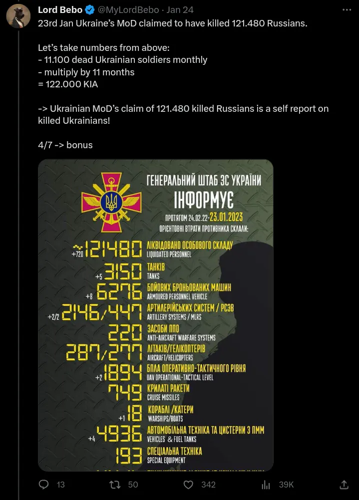 They project all their shortcomings onto Russians, not just Ammo shortages, dysfunction and corruption, but even their own casualties: