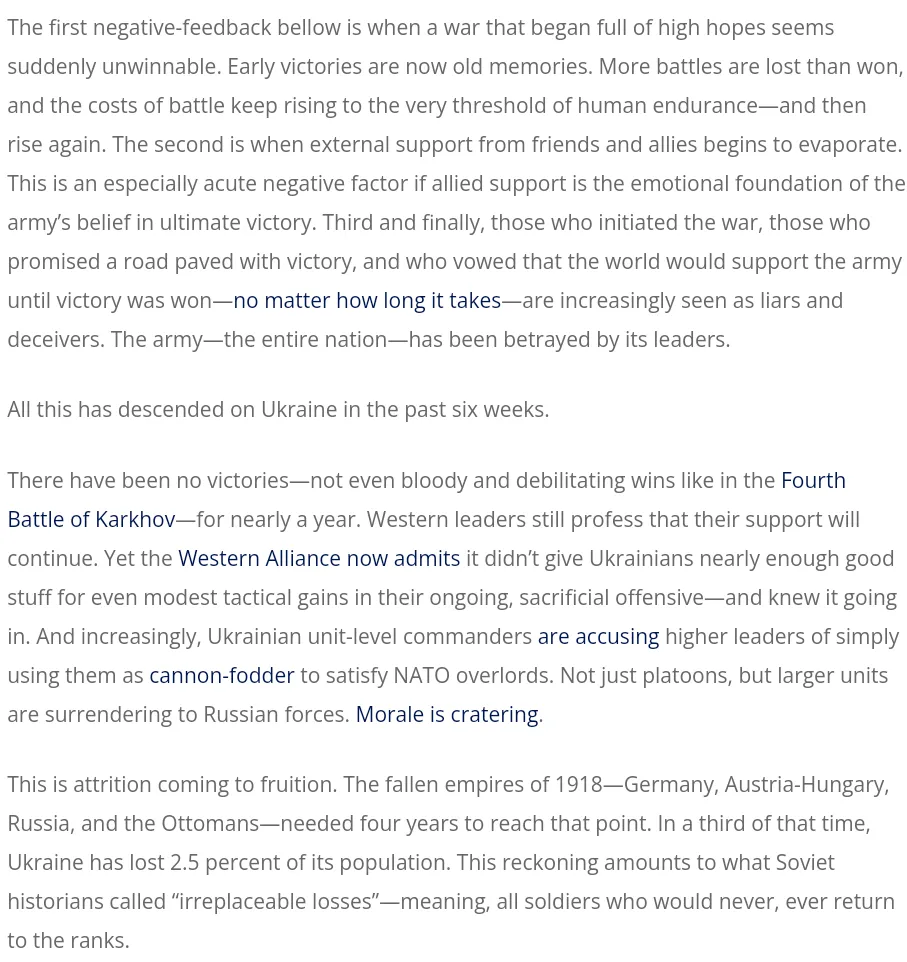 Summary of the Ukrainian lack of progress thus far on the ground and the most recent "successes" including: