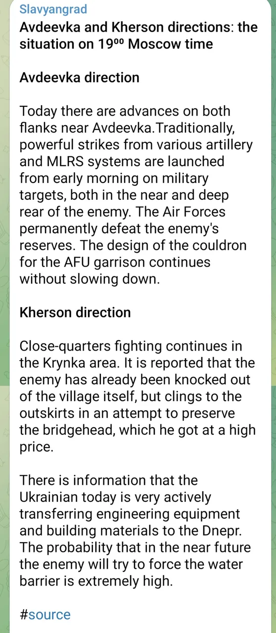 It's Ovyr: Russians Advanced In And Around Avdeevka, AFU Howitzers Shot Less Than One Shell A Day, Queef Blames West Again For Lack Of Progress On Front, Kirby Resurects Human Wave Attacks As Queef Admits Using Only Attacks On Foot and Much More Dooming
