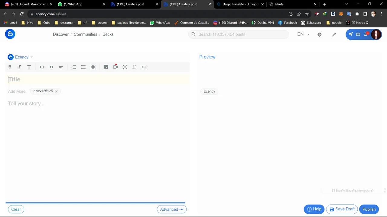 Once we are logged in @Ecency, we go to the tab that tells us to create a new post.